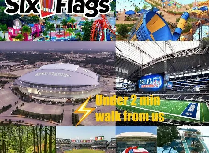 Nestled just a two-minute stroll from the iconic AT&T Stadium, the Arlington property offers an ideal base for both sports enthusiasts and family adventurers. Accommodating up to eight guests, this spacious retreat ensures that groups can relish quality time together while being conveniently located near local attractions, including vibrant dining and entertainment options in the heart of Arlington. Beyond comfortable accommodations and convenient dining, this remarkable retreat provides complimentary parking, making getting around the area a breeze. With a wealth of nearby attractions, from shopping to outdoor activities, there's no shortage of ways to fill your itinerary. It's worth noting that the Dallas-Fort Worth International Airport is just 25 kilometers away, ensuring easy access for travelers flying in.